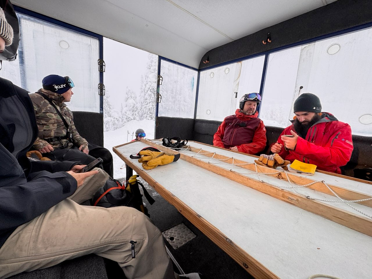 There are some great advantages to backcountry skiing from the snowcat. Namely, it is a warm, mobile shelter with space for 11 guests that we use as the headquarters of the day. Additionally, it also allows for the a longer last run.