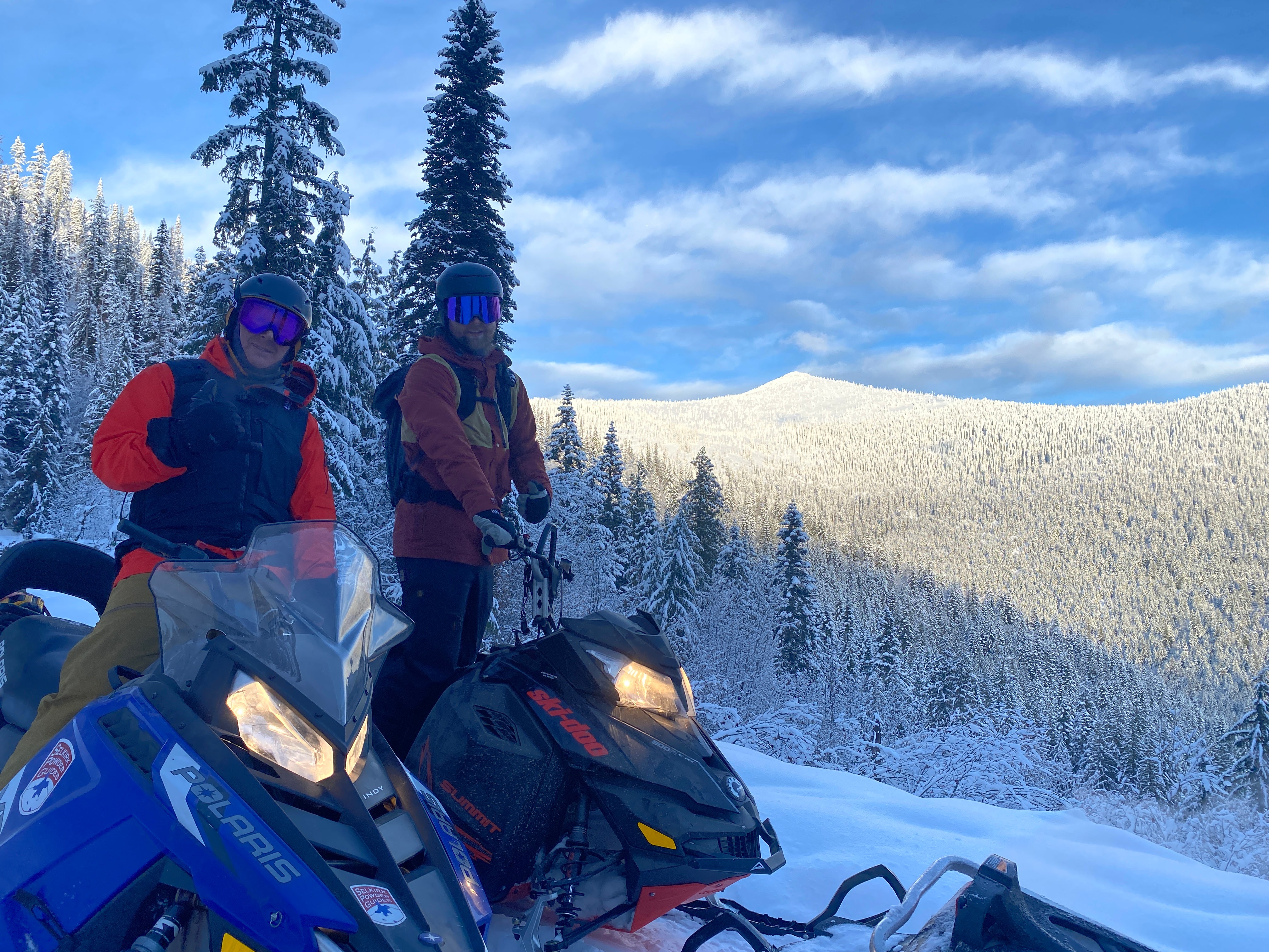 Wow! What an AMAZING experience we had last Sunday (01.15.23) snowmobiling on Schweitzer Mountain! Our guide, Sage, was professional, flexible, knowledgeable and down right FUN! The machines were beautiful, new and so easy to operate. Our afternoon two hour trip took us by stunning vistas, with a terrific mountain valley photo shoot stop. All the Selkirk Powder Staff were so helpful, friendly, and pleasantly professional. We can’t wait to come back! My 74 year old husband was riding for the FIRST TIME…and now he’s HOOKED!